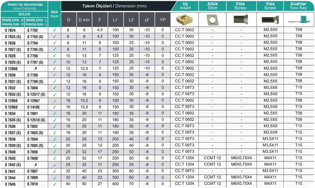 S16Q SCLCR 09 İç Çap Torna Kateri